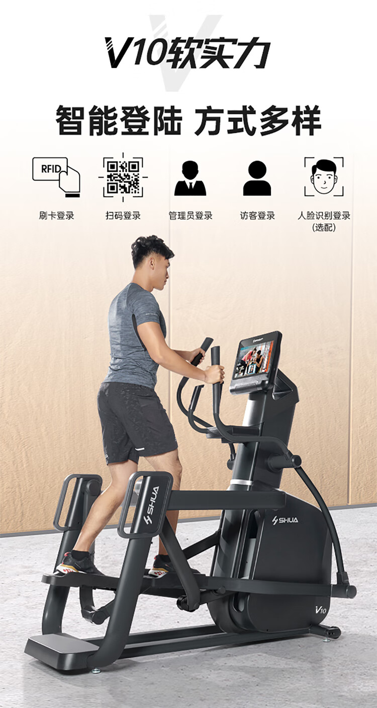 舒华仰望商用V8智能椭圆机自发电四轨漫步运动健身器材SH-E800