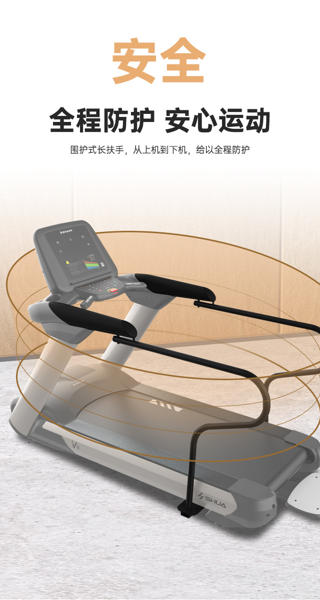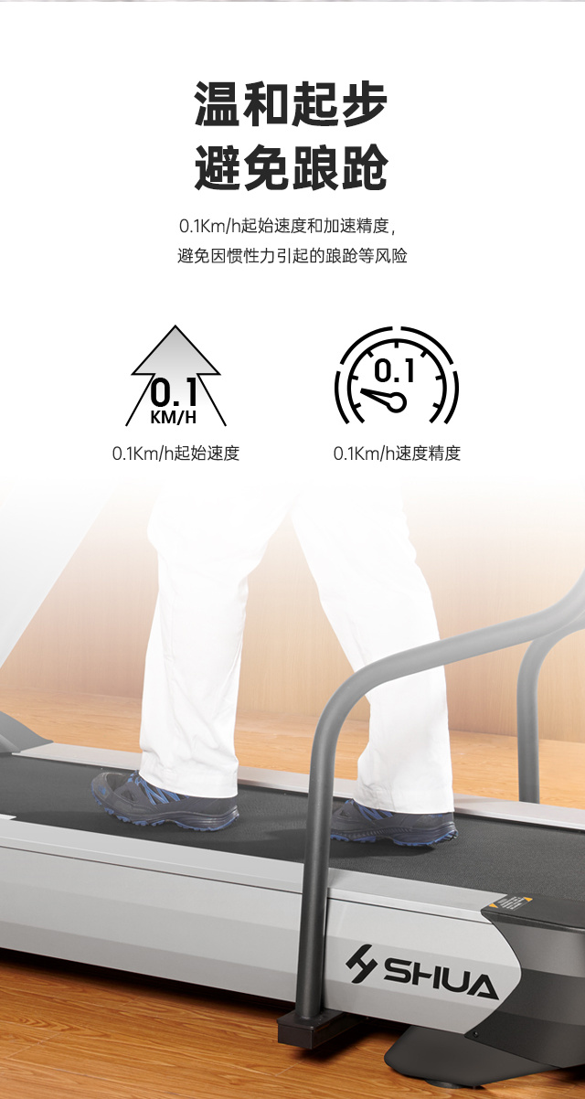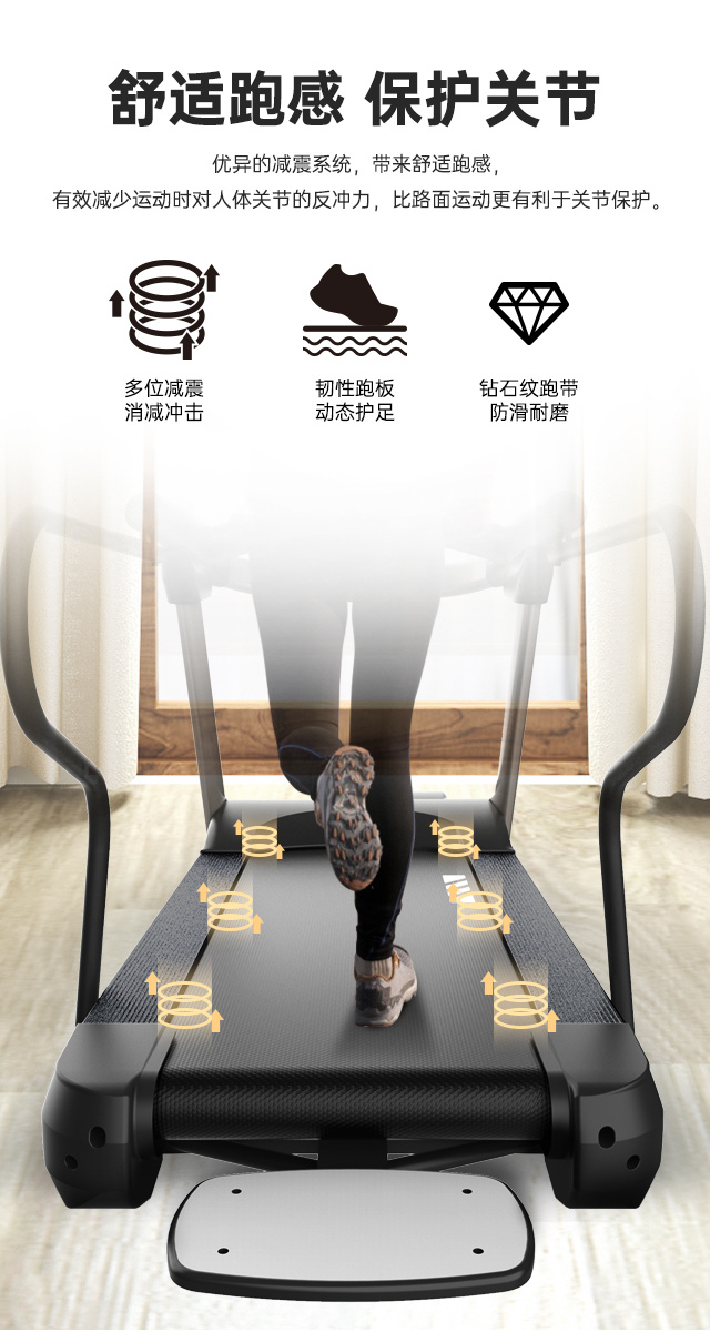 舒华多功能跑步机T56 SH-T5600-T2跑台尺寸是480×1200mm,持续马力是DC 1.5CHP(无刷电机)。